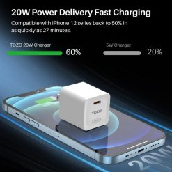- Cargador de pared USB C de alta eficiencia:potente salida PD de 20 W para una carga rápida. compatible con la serie iphone 12/13, alcanzando el 50 % en solo 27 minutos.