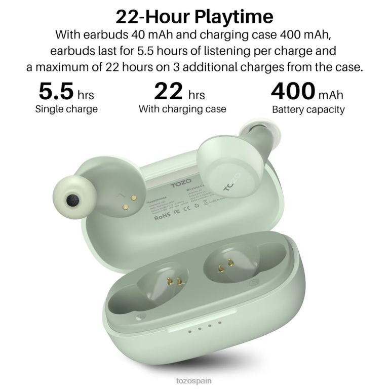 tozo a1 mini nace para brindar máxima comodidad y se adapta perfectamente a sus oídos. Para ser específicos, un solo auricular pesa solo 3,7 gy se siente casi nada cuando lo sostienes en la mano. y el pequeño tamaño del tozo a1 mini lo hace más adecuado para llevarlo todos los días.