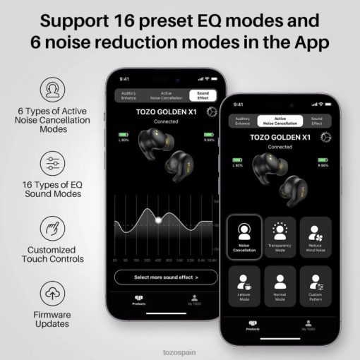 el tozo golden x1 utiliza una combinación de un controlador dinámico de 12 mm y un controlador de armadura balanceada knowles personalizado, brindando una experiencia auditiva de nivel de alta fidelidad con una pantalla ultra amplia. rango de respuesta de frecuencia de 12 hz a 44,1 khz que supera con creces su rango auditivo. también admite decodificación de audio de alta definición ldac y ha obtenido certificación de audio de alta resolución.