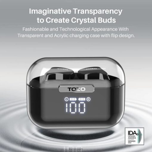 Los tozo crystal buds redefinen tu experiencia de audio con su excelente diseño y funciones avanzadas, brindando audio de alta fidelidad y llamadas nítidas. El diseño exclusivo de la cápsula espacial muestra su estilo, mientras que la pantalla digital LED inteligente garantiza una carga cómoda. Además, estos auriculares son resistentes al agua ipx8 y ofrecen una batería de larga duración de más de 40 horas.